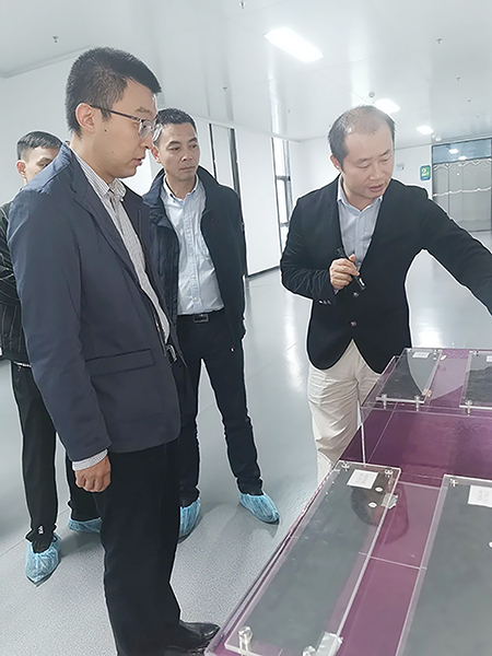 张志明介绍了瑞浦能源的发展历程及目前现状。周力一行参观了瑞浦能源自动化生产车间,认真了解了锂离子电池的生产流程和工作原理及瑞浦能源研发、生产的产品实际应用情况。一行人员对瑞浦能源在全球疫情大流行的情况下,在国内市场发展势头强劲给予了极大肯定。