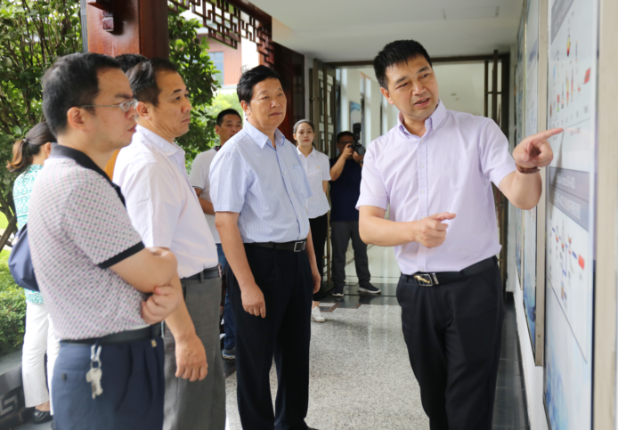 邱荣一行首先参观了青拓集团供销中心、研究院、展厅等场所,钟盛江对企业的发展历程、企业文化、生产工艺流程等进行了详细的介绍。随后一行人员又参观了党建展厅及党群服务中心,深入了解了企业党建、党支部规范化建设、党员教育管理等方面的情况。