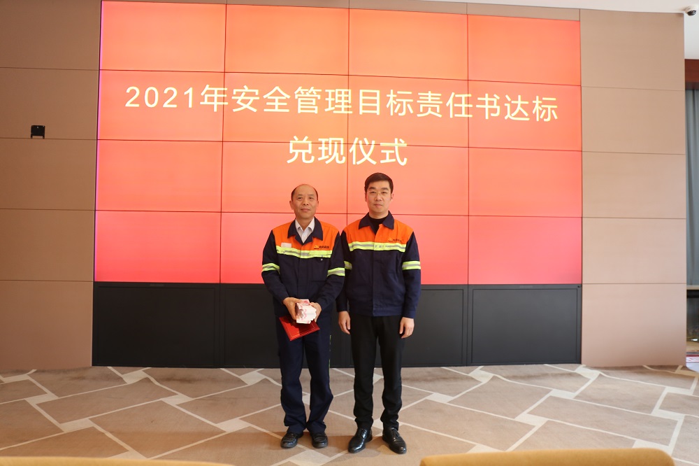 姜海洪为2021年度安全管理目标达标的9个单位进行了颁奖,并与集团直属部门、各子公司签订了2022年安全管理目标责任书。