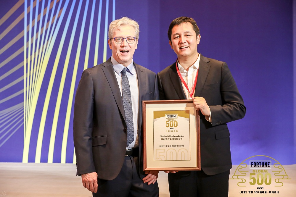 On October 19th, the 2021 Fortune Global Top 500 Summit with the theme of “Reshaping a New World” was held in Hangzhou. Nearly 700 managers and well-known scholars representing the Global Top 500 companies gathered to exchange and discuss about the world’s political and economic prospects, a more resilient global supply chain, the role of large companies in the crisis, technological innovation, and sustainable development And other hot topics. Wu Yanjun, assistant to the chairman of Tsingshan Industrial’s Board of Directors, represented Tsingshan Holding Group Co., Ltd. to attend the ceremony and receive the “Fortune 500” medal.